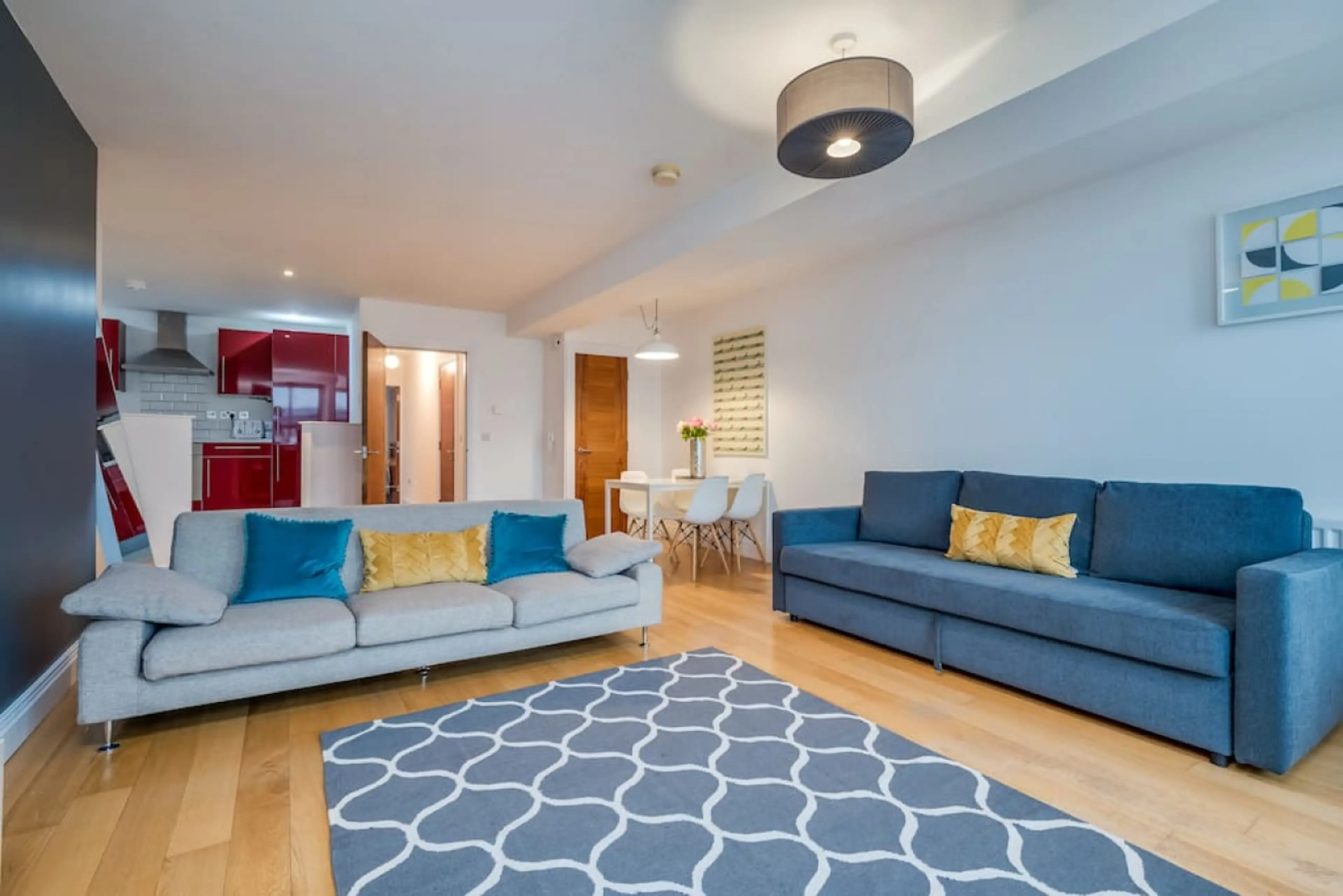Modern, spacious apartment in the heart of Belfast's Cathedral Quarter in the city centre. With high ceilings and bright, modern decor this apartment is the ideal place to base yourself as you explore the energetic and vibrant city on your door step. Sleeps up to 5 people. 1 double bed, 1 double sof...